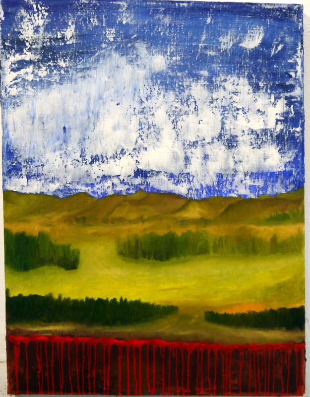 Large scale paintings depicting vineyards and other landscapes in an abstracted form.